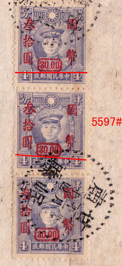 “推邮啪”微拍群创建于2015年,由麦国培负责把关主持,至今已拍卖超过2.9万项邮品,无一例伪品和争议。因群经常满人,需要参拍请联系群主(微信号:m52740)排队入群或委托出价,谢谢理解。所有拍品均为高清大图,微信看图时请点下面的→查看原图→即可。 5571#、邮资片特殊使用一组两件 1)武汉2003.5.12-上海5.15,贴用羊年邮资片剪下的邮资图两枚,作1.2元邮票使用,邮局作欠资处理;(2)甘肃甘谷2004.9.15-台北9.23印刷品,使用马踏飞燕邮资片贴于信封上再混贴编年票、普票凑成80分邮资,邮局放行处理。底价50元 5572#、新疆米泉1967.6.18-汉口6.21航平,贴普13邮票两枚,邮资10分,带内信。寄件地址为文革时期特有的改名“红卫兵水库施工组”,文革邮史。底价150元 5573#、湖北武汉1969.10.10-上海10.12航平,贴文17.10分,带有厚厚的一叠最高指示信笺内信。因邮件超重,正面盖有欠资2分戳记。此时欠资不罚倍收取,到上海后贴欠资费收据,本件颇为难得。底价50元 5574#、共主产义劳动大学红星分校-东乡县平信,贴雷锋纪念邮票8分,时代特色浓厚。底价100元 5575#、上海1969.7.14-哈尔滨-北京航平,贴井冈山10分,使用毛诗敬祝封,邮件到达后再转寄北京,正面贴有批条。底价100元 5576#、少见文革机要通信局免资公事封:湖北宜昌1969.9.5-钟祥机要公事,印有毛语录。本件是机要邮件总包,免资寄递,背面骑缝处盖有清晰机要日戳,较少见。底价100元 5577#、普16提前近一年使用:天津塘沽新港1974.12.18-江苏江阴12.21特挂,贴普16邮票20分。该票邮电版目录为1975年11月12日发行,本件提前11个月使用,证明邮票目录记录有误。底价500元 5578#、贵州铜仁1963.11.27-贵州印江县11.28裸寄医院收费通知,贴普12邮票4分,作本埠平信寄递,颇有特色。底价50元 5579#、河北天津145(所)1965.9.12-山西太原双挂号,贴普11、普13四枚,邮资46分,为超重业务。底价50元 5580#、河北阜坪1965.4.22-河北保定4.24印刷品挂号,贴普8、普11、普12邮票四枚,邮资15分(印刷品3分+挂号12分)。寄水文站收。底价50元 5581#、河南太康1958.6.4-江西临川6.10机要,贴普8邮票三枚,邮资24分。是跨省机要业务基本邮资。底价50元 5582#、河南荥阳车站1956.2.21-上海2.28平信,贴普8.8分,车站戳封较少见。底价50元 5583#、天津第十五号邮亭1951.6.13-苏联-柏林航空,贴航1、普4邮票三枚,邮资1.55万元,盖沿用民国时期右读式十五号邮亭特戳。航1国际封本已不多见,经邮亭交寄的更是难得,本件可遇不可求。底价1000元 5584#、约1957年北京寄阿姆斯特丹航空印刷品,盖北京特有的无日期法文“TP”国际邮资已付戳,是中国银行办理的国际汇款业务。底价100元 5585#、少见的火车带运邮件:浙江新昌澄潭1955.4.19-江西临川平信,贴普7.800元,盖有特殊的“本件交押车员带运”火车邮件戳,少见。底价500元 5586#、邮政储金长葛1955.8.12-上海8.15平信,贴普7.800元,盖沿用民国时期的邮政储金日戳。新中国成立后,储金业务停止,原使用的储金戳移作邮政销票之用,但并不多见。底价100元 5587#、甘肃兰州195x.9.9“邮资已付”对剖单,贴普1邮票1万元四横连带下厂铭,颇为难得。这是邮政规定对剖,并非品相问题,传统集邮佳品。底价50元 5588#、安徽南屏叶村代办所1952.9.2-江西挂号收据,沿用民国单式。仍使用清代腰框戳式,日期栏嵌有“代”字。底价50元 5589#、南京1950.4.28-南京4.29-南京中国银行5.2双挂号,贴孙像加盖“华东人民邮政”改作2千元两枚,邮资4千元。本件寄华东军政大学二抗某团,由中行寄出,盖有中行邮戳形章。底价300元 5590#、无锡1949.4.19-浙江杭州邮政储金(拾)4.21金圆汇票,汇款10.2万元,贴六和塔各种汇兑印纸及其加盖13枚。本件销票戳沿用清代腰框戳,落戳则是特殊的“邮政储金”在下、地名在上违规逆反刻制戳,正常应该是地名在下,这是杭州地方特色。底价300元 5591#、南京1949.4.22-江西丰城军人家书航空邮件,盖小型“邮 军人家书”红戳,贴印花税票改金圆500元三枚,邮资1500元。民国后期对军人家书邮件进行升级优待,免收航空邮资作航空业务寄递,实物较少见。底价300元 5592#、上海1932.9.17-江西樟树印刷品,单贴双圈孙像1分,为商号寄出。底价100元 5593#、江西上塘圩1941.9.17-南城平信,贴港版、纽约版孙像各一枚,邮资8分。由江西私立心远中学校寄出,并使用公函封,抗战邮史与教育史。底价100元 5594#、江西吉安1939.6.12-黎村县6.25平信,单贴烈士1分五枚,由吉安警备司令部寄出。使用该部公函封,抗战邮史。底价100元 5595#、史上最短和最呕心电报:湘阴-武汉1971.5.29电报一套,电报封套印有大红毛语录,单式编号“库号:287”。电报纸上盖有武汉长途电信局通框式电报专用日戳,是发给“长江日报”王军收的,电文内容仅有一个字:屁!史上最短和最呕心的一份电报,相信发报人是专门拍发此报去恶心收报人。特殊的历史和时代!底价300元 5596#、罕见“同兴轮船专盖邮票”提单邮件:山东日照涛口三义兴号1935.10.31-青岛鸿聚诚提单平信,贴伦敦版孙像单圈5分。按照规定,轮船带送提单邮件需要交纳邮资,以符邮章和尊重邮政主权。本件很明显就是这种罕见特例,不但贴有当时的平信邮资,还使用方形专用的紫色“同兴轮船专盖邮票”戳,“同兴”是当年航行于山东省内的著名轮船。票上还有少见的“中华民国廿四年十月卅一日”日期章骑缝盖销,清晰知道本件的收寄日期。封为典型的中式红条封,右上角盖有“