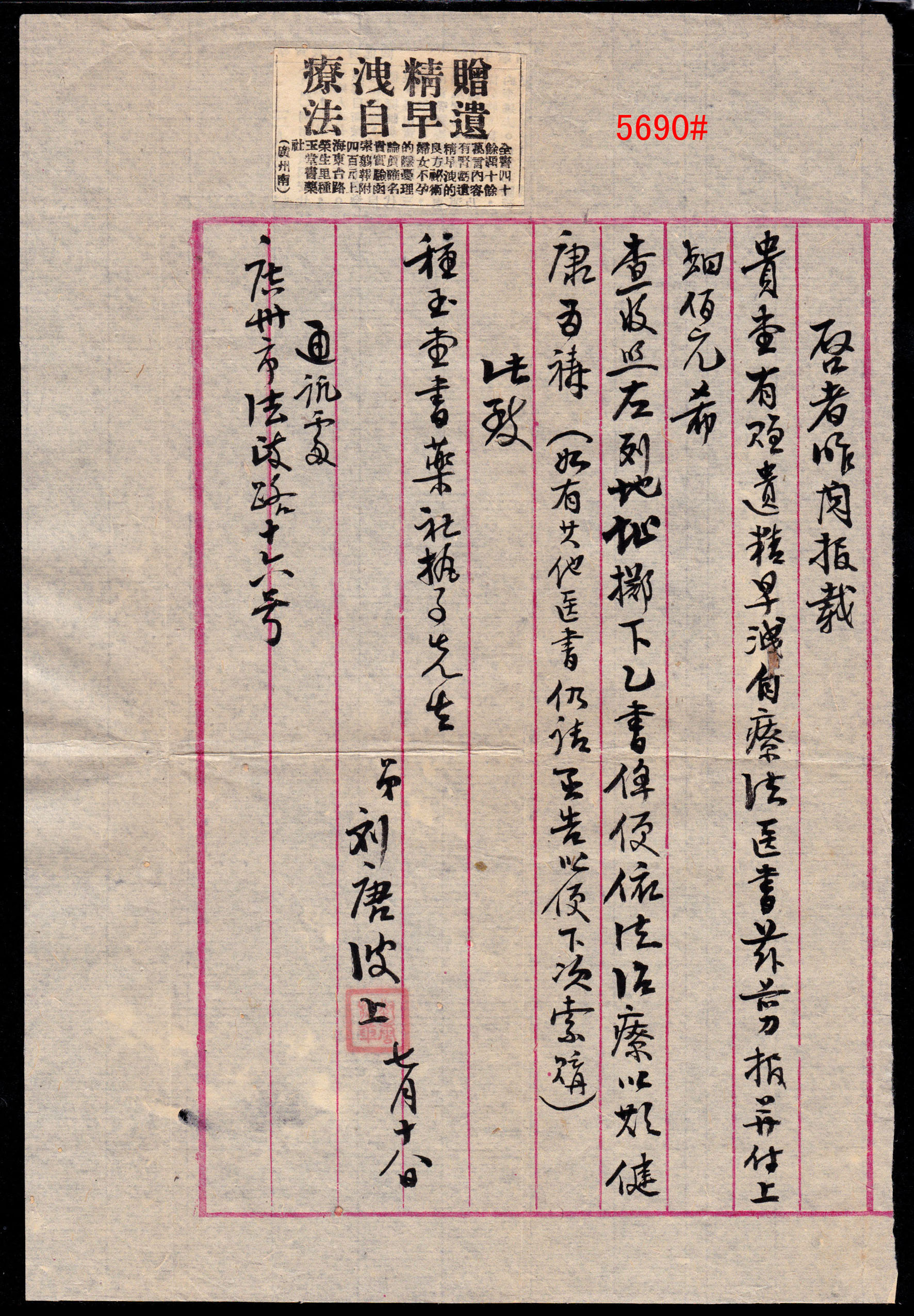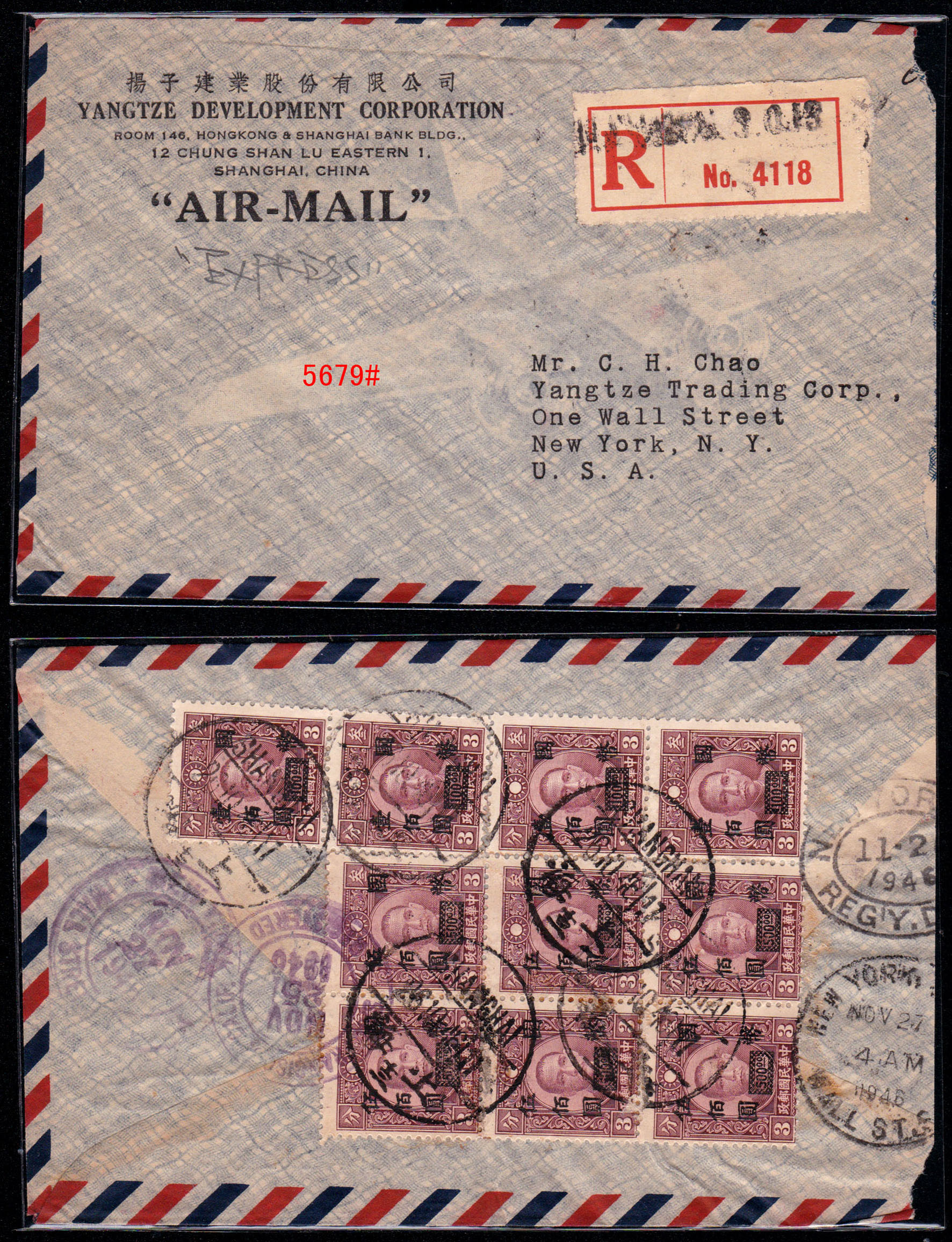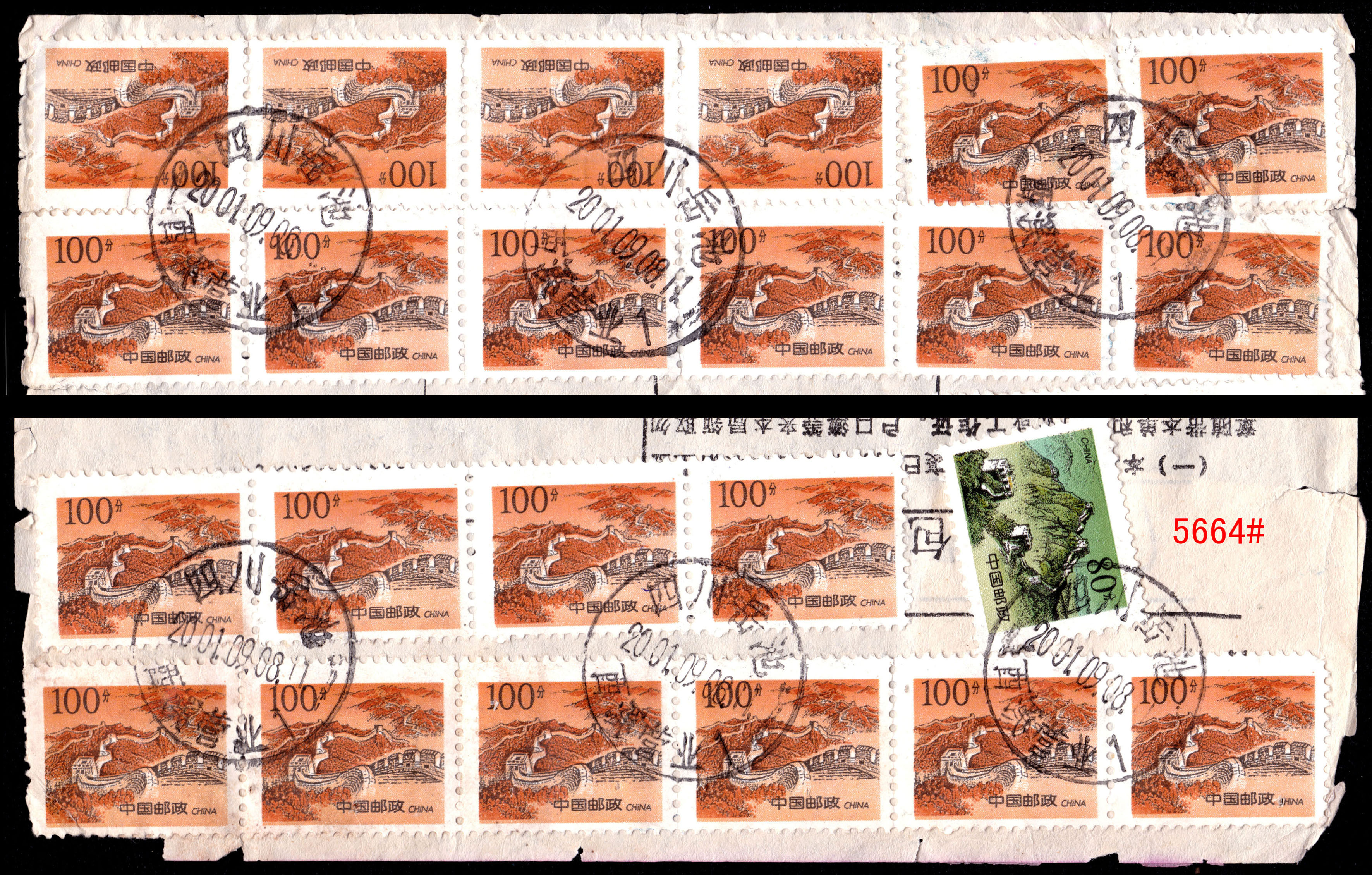“推邮啪”微拍群创建于2015年,由麦国培负责把关主持,至今已拍卖超过2.9万项邮品,无一例伪品和争议。因群经常满人,需要参拍请联系群主(微信号:m52740)排队入群或委托出价,谢谢理解。所有拍品均为高清大图,微信看图时请点下面的→查看原图→即可。 5661#、著名的香港2.3元错简,文字“寄件人姓名”错印为“寄件姓人名”,香港邮政甚少出错,很是有趣的错体邮品。无底价 5662#、安徽合肥1994年12月24日“农村邮路排单”,盖有各车站、小学校等邮站、代办所收件章,见证农村邮路及邮政设置情况。排单制度沿于清代驿站,是地方邮史、邮路素材。无底价 5663#、1999年8-10月间湖北襄阳双沟特殊邮送电报回单、电报回单一组3件,版式均不相同,分红色、黑色两种,黑色又分有黑杠、无黑杠两种。背贴编年票、长城普票等,邮资有2.5元、2.6元不同。这种属特殊的邮政业务,规定定期销毁,实物流出较少见。无底价 5664#、长城1元套色大移位包裹单:四川岳池2001.9.8-安徽萧县9.15/16包裹单,邮资31.80元,贴用长城1元31枚、80分1枚,所贴的1元票全部是套色向上移位,可见黑色已经上移到红色底框,下边出现红色虚影,很明显的套色大移位。长城票变体不多见,贴用如此多枚难得。无底价 5665#、57式戳早期使用例:上海1957.6.24-上海6.25本埠平信,贴普8.4分。带有情书一封,书法美丽,正反写满内容,反映了新时代年青人恋爱观。销票戳为57式戳的首年早期使用,上海5月底开始推出57式戳,本件是次月使用。无底价 5666#、江苏南京1支局1973.2.14-安徽歙县平信,贴文普天安门8分,使用长江大桥美术封。销票戳是南京1支局特有的大“8”字子母戳,即在日戳外捆绑邮递员工号,通常都是小字,并不明显,可与下件作明显对比。这种捆绑特大数字的颇为特殊和少见,文革特色邮史和邮戳。无底价 5667#、文普1.5分单贴子母戳封:上海19支局1974.11.11-上海11.11本埠平信,贴文普1.5分邮票。盖“6”字小型子母戳,这枚特殊面值邮票的单贴符资使用例较少见。无底价 5668#、普10.3分局部漏齿变体封:陕西武功武功车站(支)1964.8.4-陕西汉明8.9挂号印刷品,贴普8.1分、普10.3分、普11.10分等有趣面值组合票四枚,邮资15分(印刷品3分+挂号12分)。其中所贴的3分荷花票右上角明显局部漏齿变体,这是邮票在打孔时针孔缺失偶然产生的漏齿,在实寄封上使用颇为少见。销票戳更是特殊的重复地名武功车站戳,车站邮件少见,由水利学校寄出并使用公函封。本件邮戳、邮票、邮政业务皆特殊,颇为难得。底价280元 5669#、江西路口1948.7.1-江西莲花7.4-东北锦西“挂号函件清单”,寄挂号信两件,盖大型江西莲花31cm大戳,正常戳只有27cm,本件足足大了4cm。特殊的邮戳和少见的寄东北挂号邮件单式。无底价 5670#、文革时期邮件清单一组两件:(1)江西婺源1973年6月22日“封发邮件清单”,使用最高指示单式;(2)徽州20支1970年6月14日“特种挂号函件内件清单”,使用毛语录单式。该戳非常特殊,是没有省名的保密特戳。无底价 5671#、江西景德镇1963.10.11-婺源包裹单,此时包裹业务不贴票也不盖邮资已付戳。景德镇使用特殊的五格皆有文字包裹专用戳,上月牙嵌“营”(营业),下月牙嵌“包1”(包裹组1号柜),是违规和特殊的包裹特戳,颇为少见。无底价 5672#、特殊的文革时期先收后贴票包裹单:四川青神黑龙1975.9.16-四川青神9.17-四川新龙9.25包裹单,使用语录邮制单式,邮资0.76元,贴普12、普14票六枚。本件处理颇为特殊,先由公社邮局收寄,可能缺少邮票,收了现金后再交县局贴邮票销戳寄出,变成一件包裹单上有不同地名、不同日期的寄出、销票戳共存。此时林副主席事件早已发生四年,按规定“最高指示”字样需要涂抹才能使用,本件不但继续沿用,而且沿涂抹。落地戳是汉藏双文字大戳,巧合的是销票戳也是龙地名戳,本件单式、邮戳、处理等都特殊,集中发生在一件邮品上非常少见,著名集邮家刘道宜老师旧藏。底价200元 5673#、非常少见的抗战版“邮转电报收据”,为民国时期湖南地方版本,印有“特湘30-8-1000本”字样,即湖南特印1941年8月共印1000本。印有国币收费及相关规定说明,新中国成立后在50年代又改印作付款单据使用。此种抗战版本“邮转电报”实物很少见。底价200元 5674#、邮电部上海邮局1954年9月9日寄本市免资公事封,使用作废的英文邮政单式反转糊制,内有1938年抗战时期有关邮政事务等英文说明。环保节约,颇有历史价值。底价100元 5675#、邮电部北京邮票厂参观纪念试印样张,90年代初赠送给参观外宾的小型张形式票中票纪念张,图案为北京邮票厂与奔马,横双连没有撕开和裁切,左边还压印有雕刻版的文字及奔马局部图案。可以知道早年邮票印刷情况,即小型张是整版多枚组成印刷全张,中间打有齿孔,撕开成单张后再一叠叠裁切。早年邮票印刷未能完全自动化,需要手工配合完成,此印刷样票难得和少见。底价260元 5676#、中信版孙像40分加盖“金圆”伍角40方连,背面清晰透印(空后印),正面加盖则从左到向上倾斜,从面值“50”处对比最为明显,带张号。原票为土纸细齿线式打孔,中信版齿孔、纸张非常复杂有趣。此加盖倾斜及透印双重变体较难得。底价100元 5677#、民国嘉禾图3分邮资信笺新中国五十年代初作废改成“人员记录卡”,曾在湖州、临安等局任职的邮局人员履历,是难得的浙江地方邮史,也是邮政用品的特殊改制。底价50元 5678#